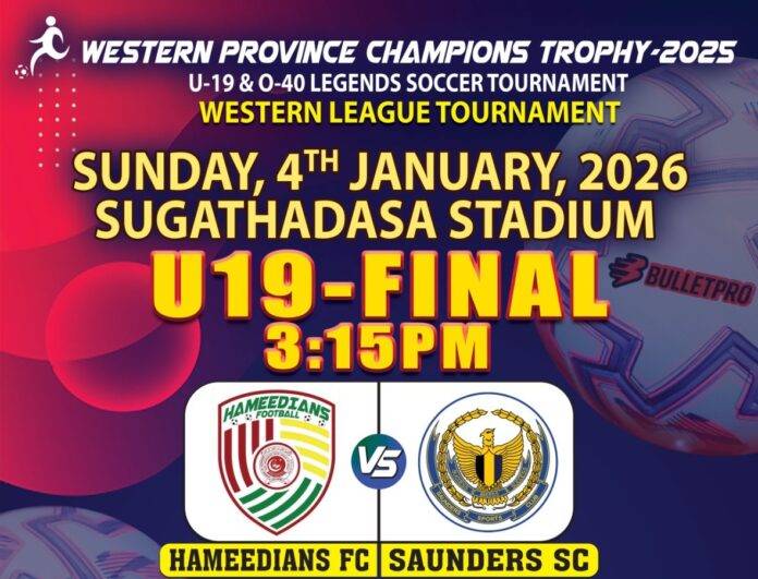බස්නාහිර පළාත් පාපන්දු සංගමය සංවිධානය කරන බස්නාහිර පළාත් චැම්පියන්ස් කුසලාන 2025 තරගාවලිය යටතේ පැවත් වූ අවුරුදු 19 න් පහළ සහ අවුරුදු 40 න් ඉහළ පාපන්දු තරගාවලියන් හී අවසාන තරග ජනවාරි 4 වන දා පස්වරුවේ කොළඹ සුගතදාස ක්රීඩාංගණයේදී පැවත්වෙනවා.මේ වන විට අවුරුදු 19 න් පහළ අවසාන තරගය සඳහා සෝන්ඩර්ස් ක්රීඩා සමාජය සහ හසීඩියන්ස් පාපන්දු සමාජය තේරී පත් වි සිටින අතර එම අවසාන තරගය පස්වරු 3.15 ට පැවත්විමට නියමිතව තිබෙනවා.