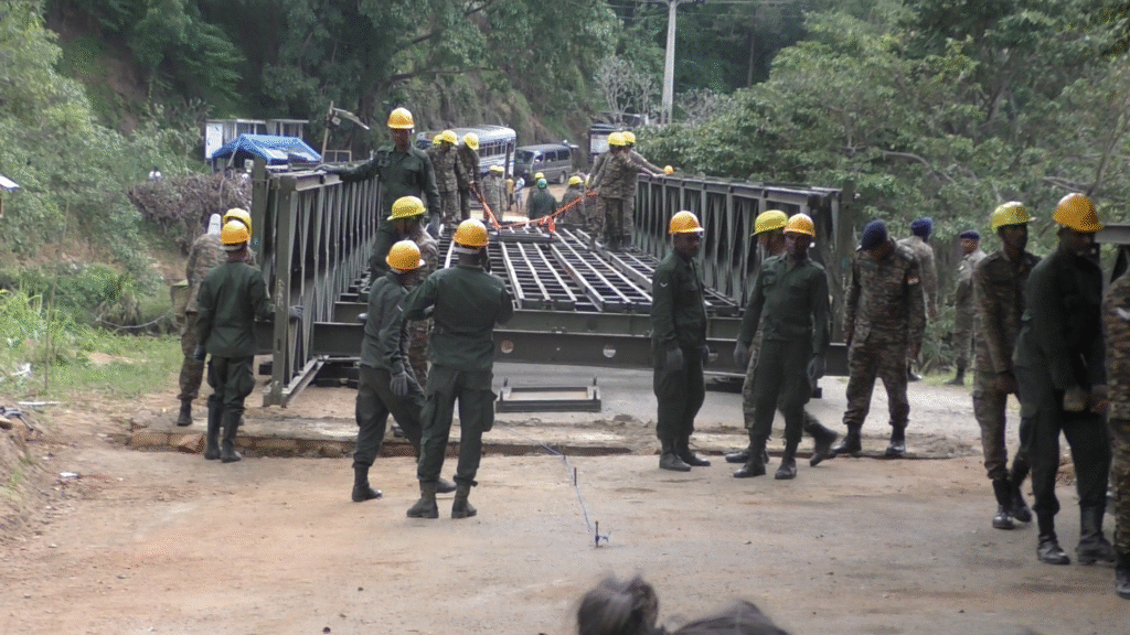 මාර්ග සංවර්ධන අධිකාරීයේ අධීක්ෂණය මත ඉන්දීය හා ශ්රී ලංකා යුද හමුදා නිලධාරීන්ගේ දායකත්වය මත පෙර සවි පාලම ඉදි කිරීමේ කටයුතු සිදුවේ.
