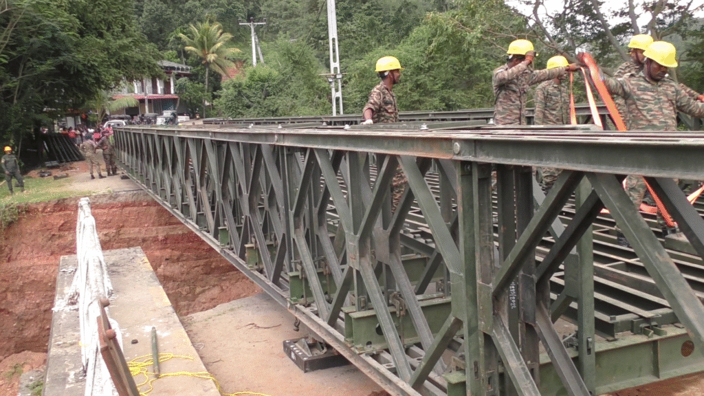 කොළඹ LNW:අධික වර්ෂාව හේතුවෙන් දැඩි හානියට පත් මහනුවර රන්දෙණිගල රජ මාවතේ බෙලිඋල්ඔය පාලම සඳහා පෙර සවි පාලමක් සවි කිරීම ශ්රී ලංකා හා ඉන්දීය යුද හමුදා දායකත්වයෙන් පසුගිය (04) අරම්භ විය.