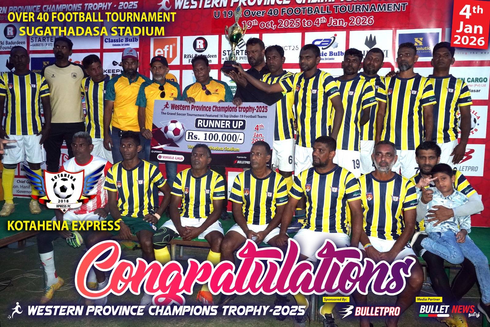 අවුරුදු 40 න් ඉහළ ප්‍රවීනයන්ගේ පාපන්දු තරගාවලියේ සූරතාවය දිනා ගන්නට මුතුවැල්ල ප්‍රවීනයන්ගේ කණ්ඩායම සමත් වූ අතර ගෝල 2-1 ක් ලෙස එහිදී පරාජයට පත් වුණේ කොටහේන එක්ස්ප්‍රස් කණ්ඩායමයි.