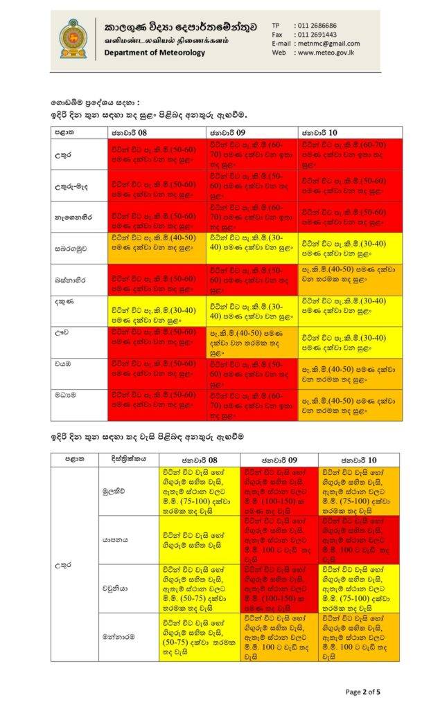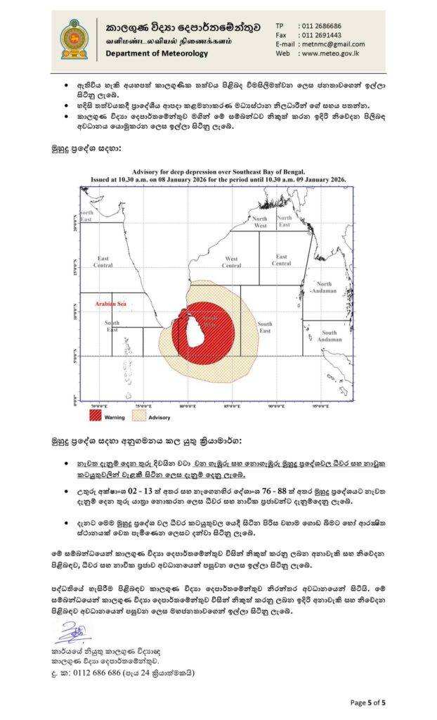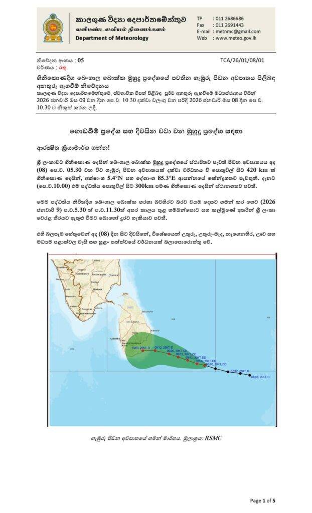 අද (08) උදෑසන 10.30 නිකුත් කර ඇති මෙම නිවේදනය ඉදිරි පැය 24 දක්වා වලංගු වේ.