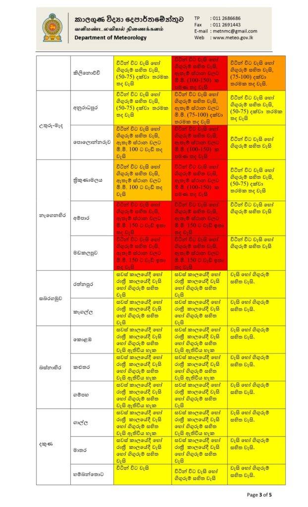ඒ අනුව ගොඩබිම් ප්රදේශ සහ දිවයින වටා වන මුහුදු ප්රදේශ සඳහා ආරක්ෂිත ක්රියාමාර්ග ගන්නා ලෙසද කාලගුණවිද්යා දෙපාර්තමේන්තුව නිවේදනය කර ඇත.