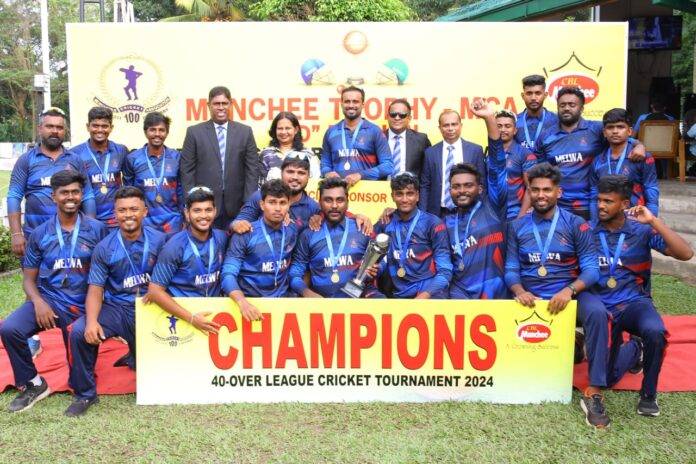 ජනවාරි 09 කොළඹ (LNW): Ceylon Biscuits Ltd. අනුග්‍රහයෙන් “Ceylon Biscuits Ltd. අනුග්‍රහයෙන් “CBL-Munchee” කුසලානය සඳහා,Melwire Rolling (Pvt) Ltd සහ Nations Trust Bank PLC “A”. කණ්ඩායම් අතර පැවති වෙළද සේවා ක්‍රිකට් සඳහා,Melwire Rolling (Pvt) Ltd සහ Nations Trust Bank PLC “A”. කණ්ඩායම් අතර පැවති වෙළද සේවා ක්‍රිකට් ඩී කොටසේ අවසන් තරගයේ දී එක් කඩුල්ලක තියුණු ජයක් වාර්තා කරන්නට මෙල්වෙයාර් කණ්ඩායමට හැකි විය.35 හැවිරිදි මහෙන්ද්‍රන් ශෙහාන්කුමාර්ගේ නායකත්වය යටතේ ඔවුන් ලැබූ මෙම ජයග්‍රහණය ඉතිහාසයේ පළමු වරට වෙළද සේවා ක්‍රිකට් කුසලානයක පහස එම කණ්ඩායමට ලබා දීමට මග පෑදීය.