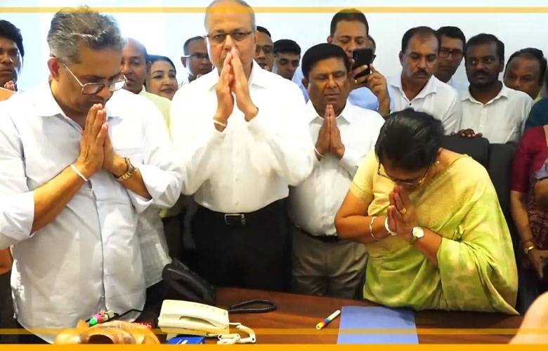 ඇය සුබ මොහොතින් සිය නිල රාජකාරි ආරම්භ කරන අවස්ථාවේ ඇයගේ අසුනට පසුපසින් ඇය සමීපයෙන්ම සිටියේ සාගල රත්නායක සහ වජිර අබේවර්ධන දෙදෙනා ය.