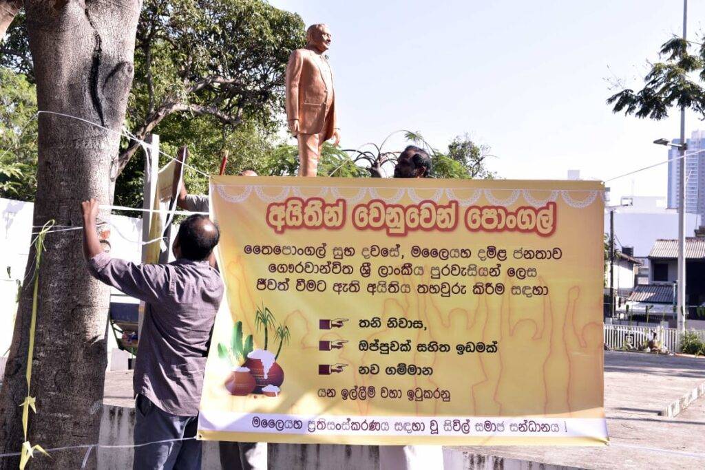 කොළඹ LNW:සුභ තෛපොංගල් උත්සවය සනිටුහන් කරමින්, ශ්රී ලංකාවේ මලයියාහ (කඳුකර දෙමළ) ප්රජාවේ සාමාජිකයින් ඊයේ (15) කොළඹ ලිබර්ටි වටරවුමේදී රැස්වී පරම්පරා ගණනාවක ව්යුහාත්මක ආන්තිකකරණයට ලක් වූ ප්රජාවක් සඳහා ඉඩම් අයිතිවාසිකම්, පුද්ගල නිවාස සහ යුක්තිය ඉල්ලා සිටියහ.