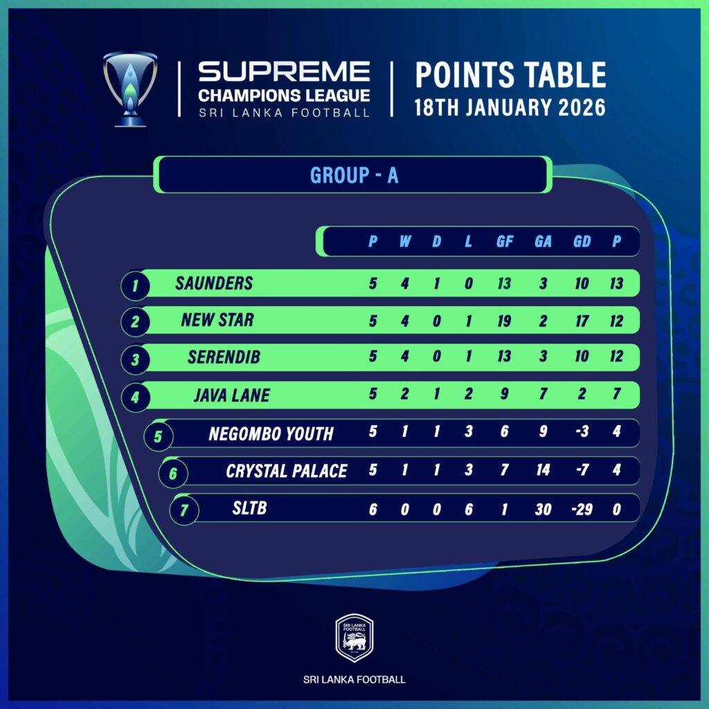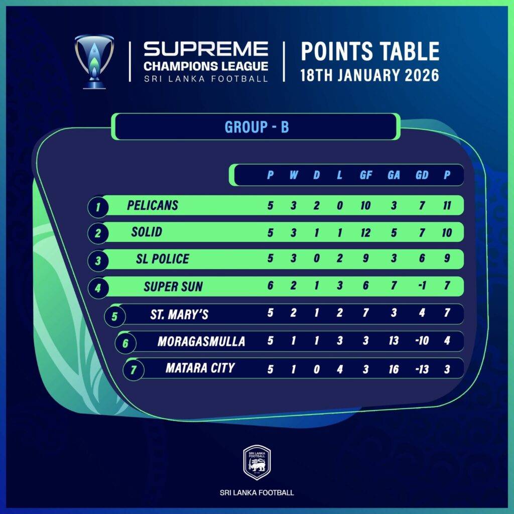 ක්රියාත්මක චැම්පියන්ස් ජාතික පාපන්දු ලීග් තරගාවලියේ ඒ කාණ්ඩයේ අපරාජිතයන් සේ පෙරමුණ ගන්නට සෝන්ඩර්ස් ක්රීඩා සමාජයත්,බී කාණ්ඩයේ අපරාජිතයන් සේ පෙරමුණ ගන්නට පෙලිකන්ස් ක්රීඩා සමාජයත් සමත්ව සිටිනවා.ගෙවුණු සති අන්තයේ ඒ කාණ්ඩයේ සිටින දක්ෂතම කණ්ඩායමක් වන ජාවාලේන් කණ්ඩායමට එරෙහිව සෝන්ඩර්ස් කණ්ඩායම ගෝල 3-0 ක් ලෙස ජය ලබා ගැනීමෙන් ඉනික්බිතිව මෙවර තරගාවලියේ තරග පහකට ක්රීඩා කර ඉන් හතරක් ජයගෙන එක් තරගයක් ජය පැරදුමෙන් තොරව හමාර කර පෙරමුණට පැමිණ සිටින අතර නිව් ස්ටාර් කණ්ඩායම සිටින්නේ එම කාණ්ඩයේ දෙවන තැනයි.