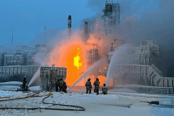 ගින්නට හේතුව මෙතෙක් අනාවරණයව නොමැති අතර එම ප්‍රදේශයේ ඩ්‍රෝන යානා දැකගත හැකිව තිබීම හේතුවෙන් යුක්රේනය විසින් දියත්කරන ලද ප්‍රහාරයක් හේතුවෙන් ගින්න ඇතිව ඇති බවට සැක පල කෙරේ. මේ වන විට පර්යන්තයේ වැඩ කටයුතු අත්හිටුවා ඇති අතර රුසියාව සහ යුක්රේනය එකිනෙකාගේ බලශක්ති යටිතල ව්‍යුහය ඉලක්ක කර ගනිමින් ප්‍රහාර දියත් කරන බවට ඔවුන් එකිනෙකට චෝදනා කර ගනිමින් සිටියි.