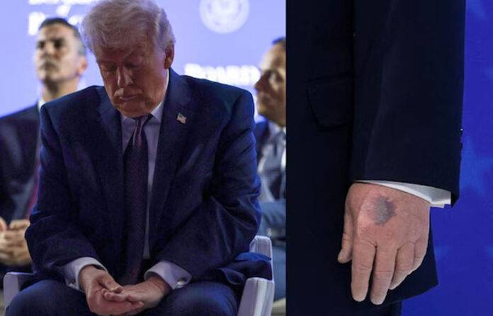එනම්, එක්සත් ජනපද ජනාධිපතිවරයා ඊයේ (22)දිනයේදී ඩාවෝස් සමුළුවේ දී ලේඛනවලට අත්සන් කරන විට ගනුලැබූ ජයාරූප මෙලෙස ලෝකය පුරා සිඝ්රයෙන් ව්යාප්තව ඇති අතර ඒවායේ ජනාධිපති ට්රම්ප්ගේ වම අත දැඩිව නිල්පැහැ වූ සලකුණ වඩාත් කැපී පෙනුණි.