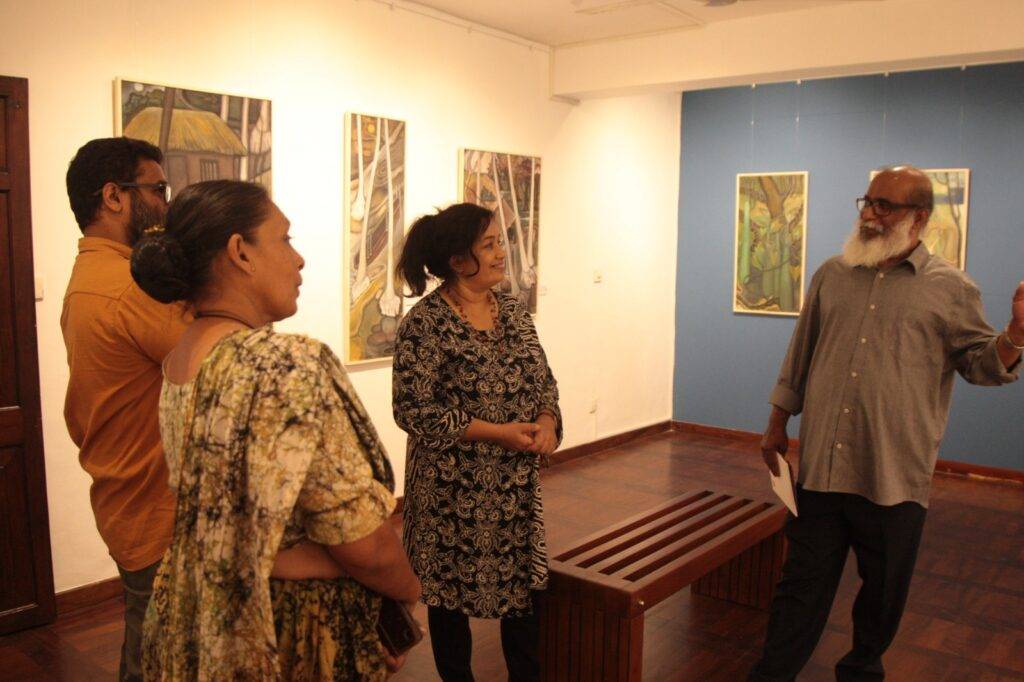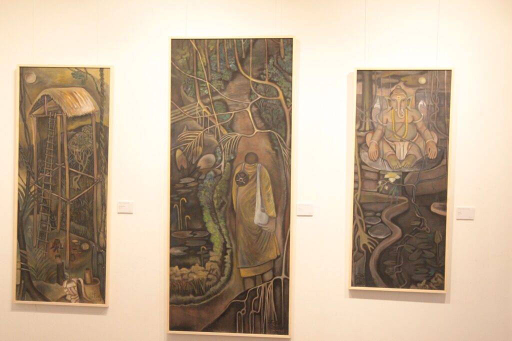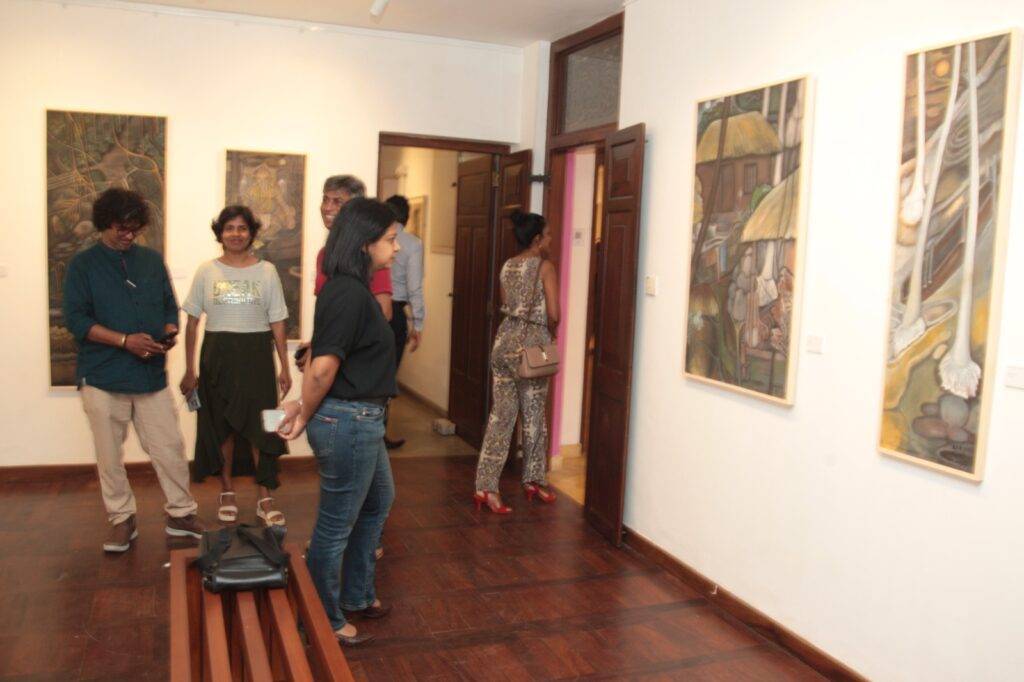 නදිනි ඩේවිඩ්,රූබට් සොයිසා සහ සීවලී ඉලගසිංහ යන කලාකරුවන් ත්‍රිත්වය විසින් නිර්මාණය කරන ලද චිත්‍ර එම ප්‍රදර්ශනයට එක්කර තිබෙන අතර අද (23) සිට පෙබරවාරි 22 වැනිදා දක්වා එය පැවැත්වෙයි.