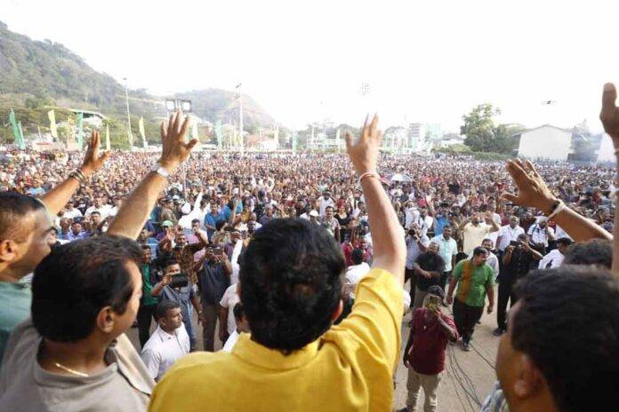 එම ජන රැළියට අතිවිශාල ජනකායක් පැමිණ සිටි ආකාරය දැකගත හැකිවිය.