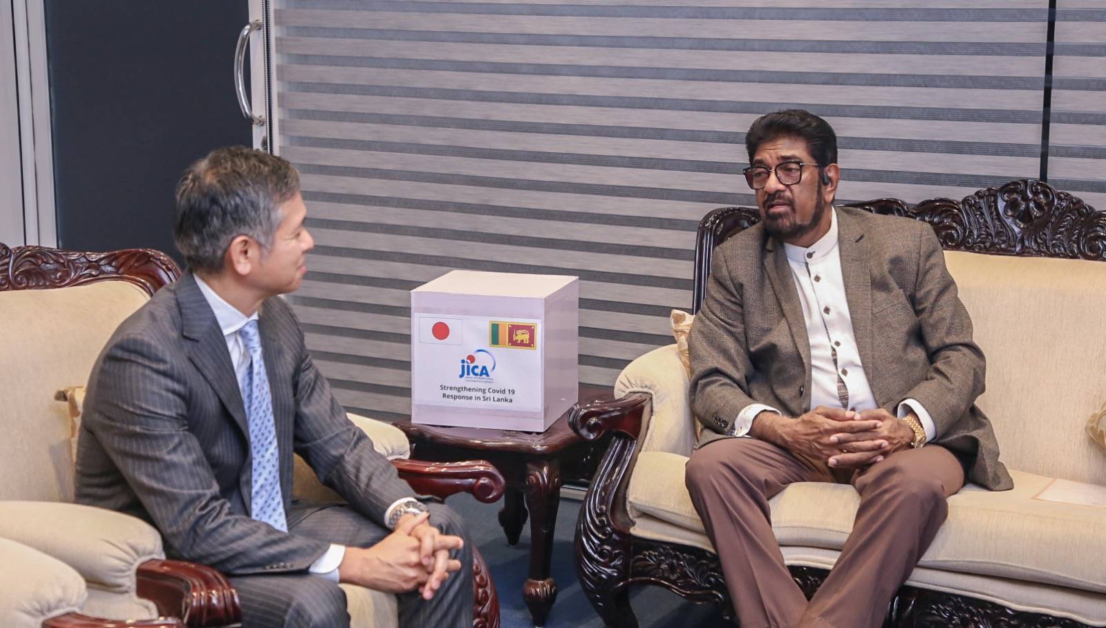 සෞඛ්‍ය අමාත්‍ය ආචාර්ය කෙහෙලිය රඹුක්වැල්ල මහතා වෙත එම ඖෂධාධාර තොගය ශ්‍රී ලංකාවේ ජපන් තානාපති කාර්යාලයේ පලමු ලේකම් කෙන්ජි ඔහාෂි  මහතා (Mr. Kenji Ohashi) විසින් නිල වශයෙන් භාර දුන්නේය.