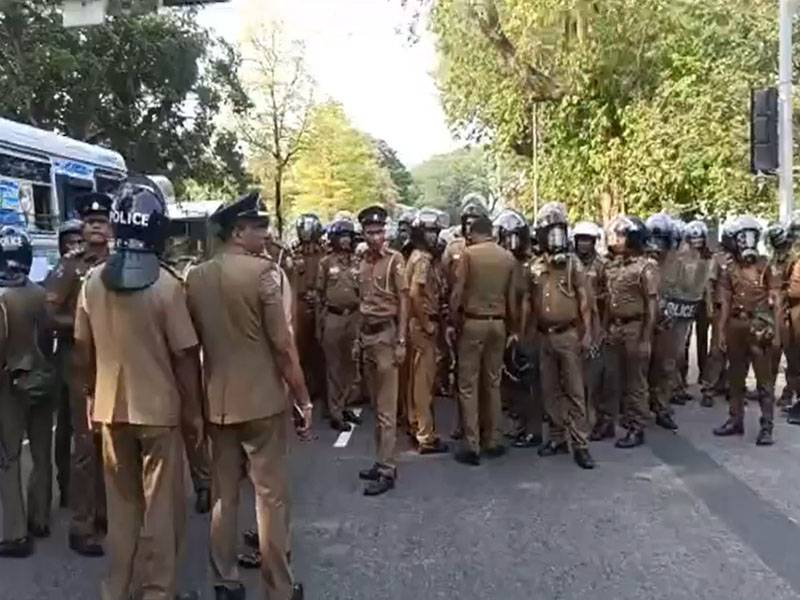 උද්ඝෝෂණයක් අතරතුර කොටුව පොලිස් ස්ථානයේ පාලන අංශයේ ස්ථානාධිපතිවරයා බිම ඇදවැටී තුවාල ලබයි!