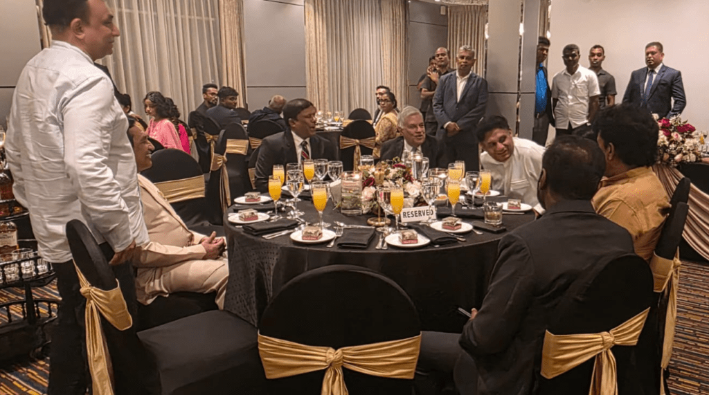 පිළියන්දල ප්රදේශයේ හෝටලයක පැවති මෙම උත්සවය සඳහා රනිල් – සජිත් දෙදෙනාටම ආරාධනා ලැබී තිබුණු අතර ඔවුන්ට ආසන පනවා තිබී ඇත්තේ ද එකම මේසයක ය.