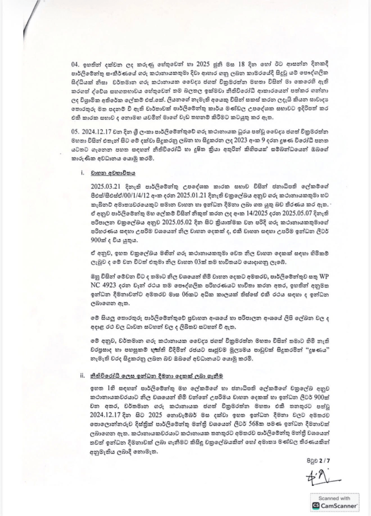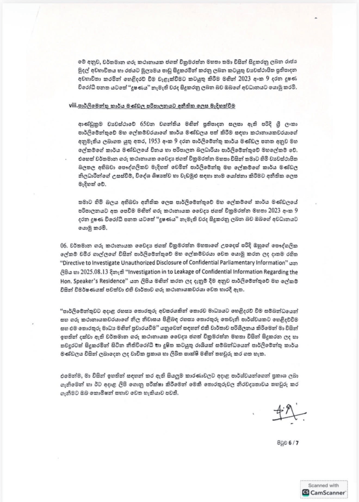 එම සම්පූර්ණ විස්තර සහිත ලිපිය පහතින් දැක්වේ.