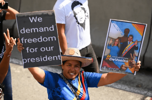 මදුරෝ නිදහස් කරන ලෙස බලකරමින් දහස් සංඛ්‍යාත ජනතාවක් වීදි බැස සිටින අතර, මෙය ජාත්‍යන්තර නීතිය උල්ලංඝනය කිරීමක් බවට ඔවුහු චෝදනා කරති.