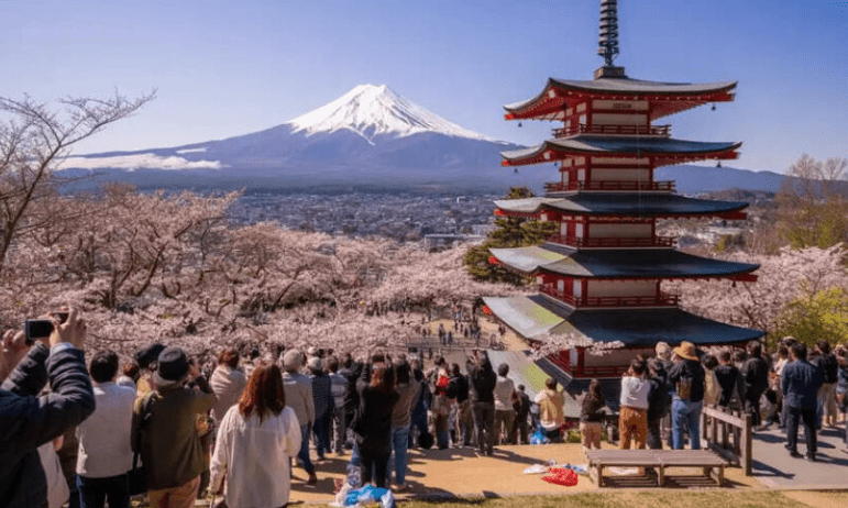මෑත කාලීනව ජපානයේ සංචාරකයින්ගේ අසීමිත පැමිණීම සහ ඔවුන්ගේ නොගැලපෙන හැසිරීම් හේතුවෙන් සුප්රසිද්ධ ෆුජියෝෂිඩා චෙරි මල් උත්සවය අවලංගු කිරීමට එරට බලධාරීන් තීරණය කර ඇත.