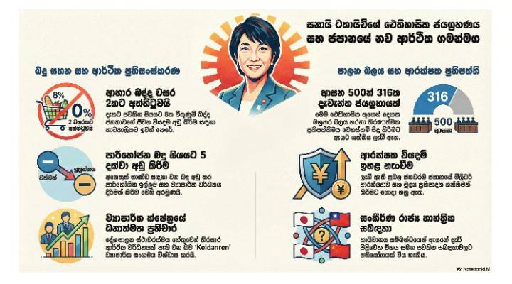 ‘ඓතිහාසික’ ජයග්‍රහණයෙන් පසු බදු කප්පාදු ඉටු කිරීමට ජපානයේ Takaichi ප්‍රතිඥා දෙයි..