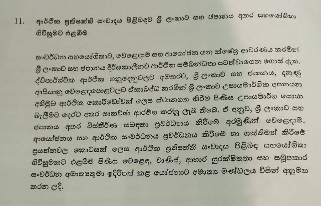 පුවත් ජපානය සහ මෙරට අතර සහයෝගිතා ගිවිසුමක්! Date: February 10, 2026 රෂිකා හෙන්නායක පෙබරවාරි 10 , කොළඹ LNW : ආර්ථීක ප්රතිපත්ති සංවාදය පිළිබඳව ශ්රී ලංකාව සහ ජපානය අතර සහයෝගිතා ගිවිසුමකට එළැඹීමට කැබිනට් අනුමැතිය ලැබී ඇත. TagsJapanLanka News WebSri Lanka Previous articleබදුල්ල ශික්ෂණ රෝහලේ සංවර්ධන කටයුතු පිළිබඳ තීරණයක්! Share post: FacebookTwitterPinterestWhatsApp Popular බදුල්ල ශික්ෂණ රෝහලේ සංවර්ධන කටයුතු පිළිබඳ තීරණයක්! පළමු ආසියානු පිරිමි නෙට්බෝල් කිරුළ හොංකොං ට- ශ්රී ලංකාව සහභාගි වන්නේත් නැත කයිවාරුවලින් වැඩක් නැහැ පුළුවන් නම් පළාත් සභා ජන්දය තියන්න! ආසියානු නැගී එන්නියන්ගේ තරගාවලියේ නායකත්වය අනුෂ්කාට උප නායිකාව හංසිමා ලියුම් ලියපු ශම්මි සහ ශ්රී ලංකා ක්රිකට් හැර පකිස්තානය ඉන්දීය තරගයට සහභාගිවීම ගැන අන් අය තනිව ඔප්පු ලියා ගනිමින් ඇත More like thisRelated බදුල්ල ශික්ෂණ රෝහලේ සංවර්ධන කටයුතු පිළිබඳ තීරණයක්! Rashika Sandamali - February 10, 2026 රෂිකා හෙන්නායක පෙබරවාරි 10,කොළඹ LNW : බදුල්ල ශික්ෂණ රෝහලේ දැනට... පළමු ආසියානු පිරිමි නෙට්බෝල් කිරුළ හොංකොං ට- ශ්රී ලංකාව සහභාගි වන්නේත් නැත Rashika Sandamali - February 10, 2026 නිශ්මං රණසිංහ පෙබරවාරි 10, කොළඹ LNW: බොහෝ වෙලාවට වත්මන් නෙට්බෝල්... කයිවාරුවලින් වැඩක් නැහැ පුළුවන් නම් පළාත් සභා ජන්දය තියන්න! ASK - February 10, 2026 කොළඹ LNW:ප්රාදේශීය සභා මැතිවරණය පැවැත්වූ ආකාරයටම හැකි නම් පළාත්... ආසියානු නැගී එන්නියන්ගේ තරගාවලියේ නායකත්වය අනුෂ්කාට උප නායිකාව හංසිමා Rashika Sandamali - February 10, 2026 නිශ්මං රණසිංහ පෙබරවාරි 10, කොළඹ LNW: පෙබරවාරි 11 වන දා...