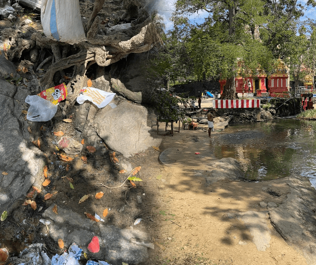 එම පරිසර දූෂණයට එක් ප්රධාන හේතුවක් වන්නේ අමුත්තන් විසින් ප්ලාස්ටික් සහ ආහාර අපද්රව්ය නිසි ලෙස බැහැර නොකිරීමයි. නිසි අපද්රව්ය කළමනාකරණයකින් තොරව ඉවතලන ප්ලාස්ටික් ගඟට එකතු වී ජලජ ජීවීන්ට හානි කරමින් ගඟේ ස්වභාවික සුන්දරත්වයද නැතිව යයි.