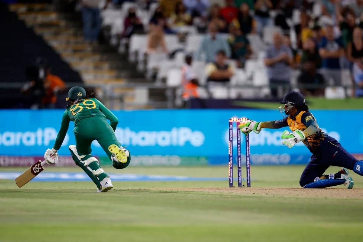 පන්දු ඕවර් දෙකයි ලකුණු 20 යි වූ මොහොතේදි චමරි අවසාන පන්දු ඕවරයට ඉනෝකා රඳවා ගන්නේ නැත.ඇය තුළ තුළ සුනි ගේ කරදරය ඉනෝකා හමාර කර දෙන බවට තද විශ්වාසයක් තිබිණ.ඉනෝකා එය ඉටු කළාය.අනුෂ්කා සංජීවනීගේ ද සහය ඇතිව සුනීව මුලා කර ශ්‍රී ලංකාව සතු ජාත්‍යන්තර අවධානය වැඩියෙන්ම දිනා සිටින වමත් දඟ පන්දු යවන්නිය සුනීව ස්ටම්ප් කිරිමකට මැදි කර ගත්තාය.ලකුණු දුලබ පන්දු ඉදිරියේ ලකුණු සොයන්නට ගිය ලකුණු අතරට එමින් සිටි,දකුණු අප්‍රිකානු කඩුලු රකින්නිය ෂිනාලෝ ජැෆ්ටා එම පීඩනය හමුවේ දුවද්දි දැවී ගියේ ද අවසාන පන්දු ඕවරය යවන්නට සිටි සුගන්ධිකාගෙ කාර්ය පහසු කරමින්ය.