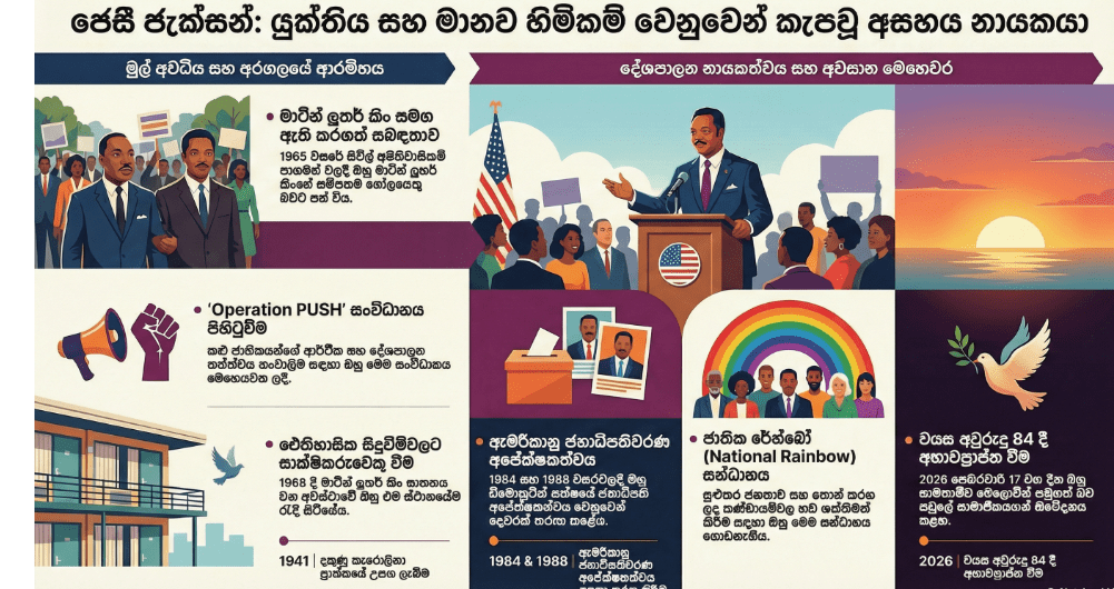 2026 පෙබරවාරි 17 වන දින, වයස අවුරුදු 84ක්ව සිටියදී අභාවප්රාප්ත වූ ගරු ජෙසී ජැක්සන් (Jesse Jackson) යනු ඇමරිකානු සිවිල් අයිතිවාසිකම් ඉතිහාසයේ සන්ධිස්ථානයකි.
