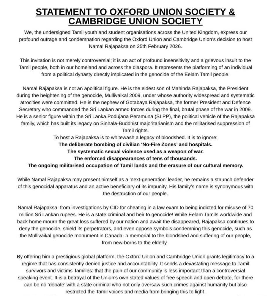 මෙහිදී නාමල් රාජපක්ෂ ඔක්ස්ෆර්ඩ් හා කේම්බ්රිජ් විශ්ව විද්යාලවල පවත්වන උත්සව අවස්ථාවන්වලට සහභාගී වීමටද නියමිත අතර මෙම සංචාරය පිළිබදව දැනගත් ඩයස්පෝරාව නාමල්ගේ ගමන වැළැක්වීමට ශ්රී ලංකා රජයට මෙන්ම මහාබ්රිතාන්ය රජයටත් බලපෑම් කර ඇතැයි වාර්තා වෙයි.