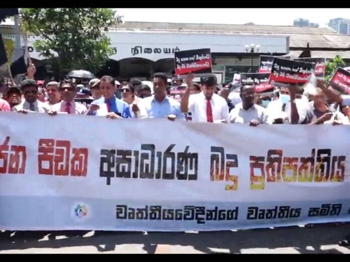 නව බදු පනතට එරෙහිව අද (22) වෘත්තීයවේදීන්ගේ වෘත්තීය සමිති එකමුතුව විසින් ජාතික විරෝධතා දිනයක් ලෙස නම් කර දහවල් කොටුව දුම්රිය ස්ථානය ඉදිරිපිට විරෝධතා ව්යාපාරයක් සංවිධානය කර තිබුණි.