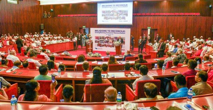 එබැවින් රට තුළ සංහිඳියාව සහ ආගමික සහජීවනය ගොඩනැඟීමට සියලුදෙනා එක්විය යුතු බව අවධාරණය කළ ජනාධිපති රනිල් වික්රමසිංහ මහතා ඒ වෙනුවෙන් රජය මේ වන විට සාධනීය පියවර රැසක් ගෙන තිබෙන බවද පෙන්වා දුන්නේය. ජනාධිපති රනිල් වික්රමසිංහ මහතා මේ බව සඳහන් කර සිටියේ අද (28) පෙරවරුවේ කොළඹ බණ්ඩාරනායක ජාත්යන්තර සම්මන්ත්රණ ශාලාවේ පැවති ශ්රී ලංකා ජාතික සාම මණ්ඩලය විසින් සංවිධානය කරන ලද “සංහිඳියාව සඳහා ආගම්” ජාතික අන්තර් ආගමික සමුළුව අමතමිනනි.