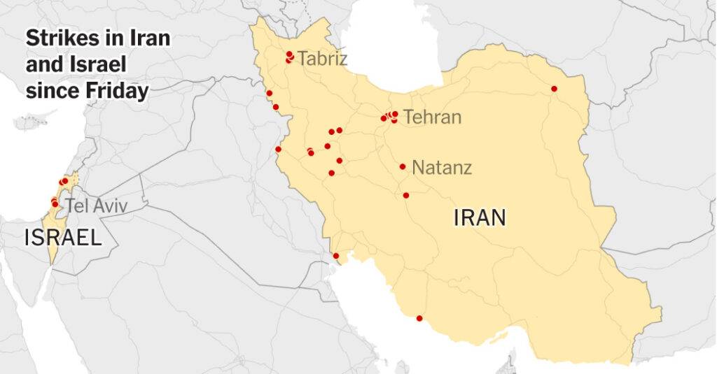 සති අන්තයේ හමුදා ක්රියාමාර්ග ආරම්භ වූ දා සිට රට තුළ අඛණ්ඩ ප්රහාර එල්ල වී තිබේ. ටෙහෙරානයේ විවිධ ස්ථාන 13 ක ප්රහාර පිළිබඳ දෘශ්ය සාක්ෂි මේ වන විට තහවුරු කර ඇති අතර ඉරානය පුරා තවත් නගර සහ උප නගර 12කට පහර දී ඇත.