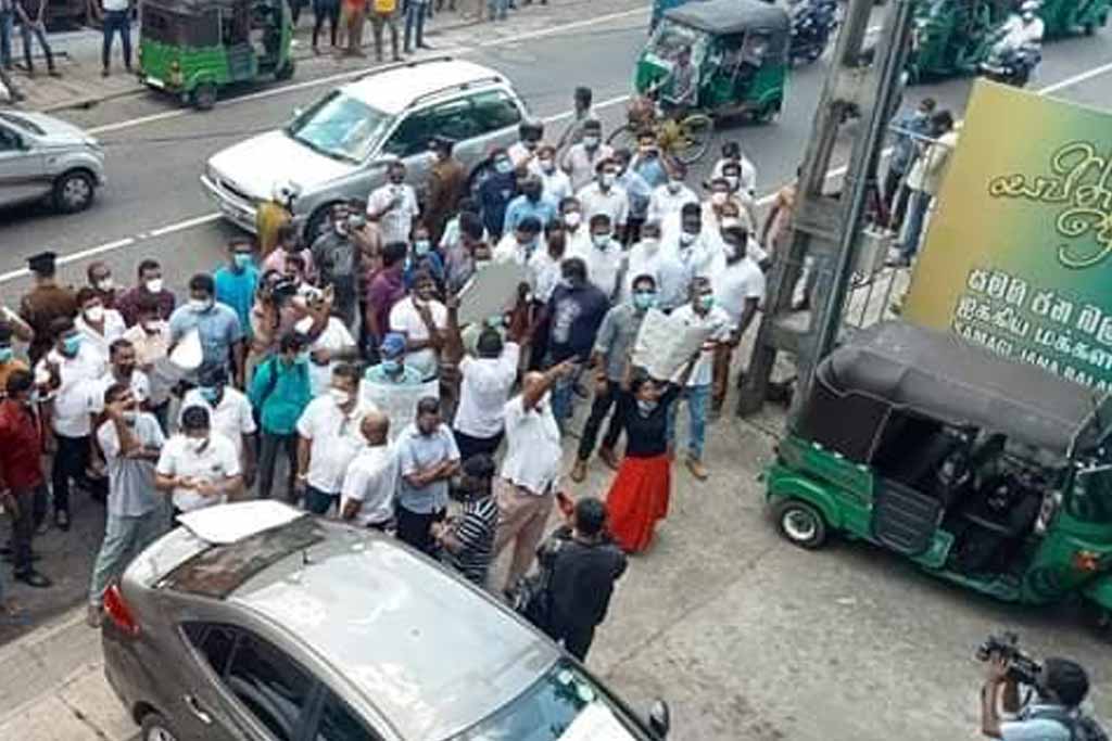 කෝට්ටේ පිහිටි සජබ ප්රධාන කාර්යාලය ඉදිරිපිට ඔවුන් මෙසේ විරෝධතා පුවරු පෙන්වමින්, හූ කියමින් උද්ඝෝෂණයෙහි යෙදුණු අතර පොලිසිය ද ඒ අවට රැස්ව සිටින ආකාරය දක්නට ලැබිණි.