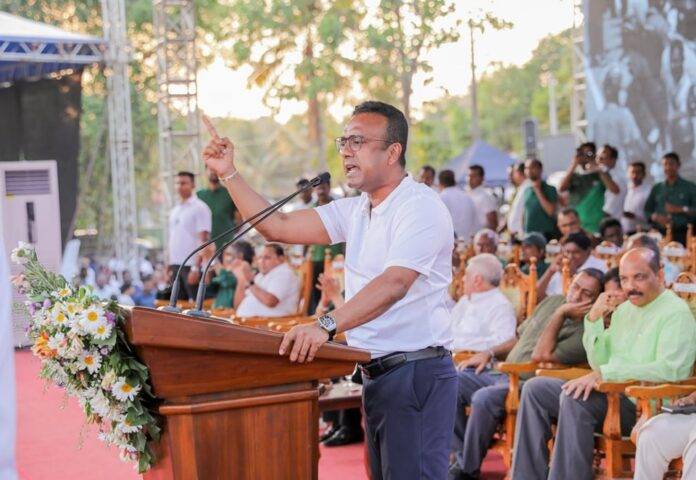 මේ ආරම්භය විතරයි, මේ පටන්ගත්තා විතරයි. රට අමාරුවෙ වැටිච්ච වෙලාවේ ඤං පචං ගාලා, කකුල් වෙව්ලන්නේ නැතිව, ආණ්ඩු ගන්න බැරුව, ගෙවල් අස්සේ රිංගගෙන ඉන්නේ නැතිව, උඩ තට්ටුවලට වෙලා, පල්ලෙහාට බහින්නෙ නැතුව කරන්න තියෙන වෙනස කරලා, තමන්ගේ ගේ ගිනි තියද්දි, රට බාරගෙන අද රට මෙතන්ට ගෙනත් හුස්මගන්න පුළුවන් වෙන තැනට රට ගෙනාව විතරක් නෙවෙයි, බංකොලොත් වෙච්ච රට බංකොලොත් නොවන රටක් බවට කියන්න පුළුවන් තැනට ගෙනාවේ රනිල් වික්රමසිංහ ජනාධිපතිතුමායි.