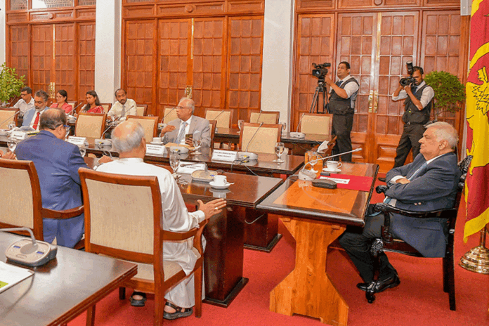 ජාත්‍යන්තර මූල්‍ය අරමුදලේ යෝජනා සම්බන්ධයෙන් සාකච්ඡා කිරීම සඳහා ජනාධිපති රනිල් වික්‍රමසිංහ මහතා විසින් කැඳවා තිබු විපක්ෂයේ පක්ෂ නායක රැස්වීම ඊයේ (11) පෙරවරුවේ ජනාධිපති කාර්යාලයේදී ජනාධිපති රනිල් වික්‍රමසිංහ මහතාගේ ප්‍රධානත්වයෙන් පැවැත්විණි.