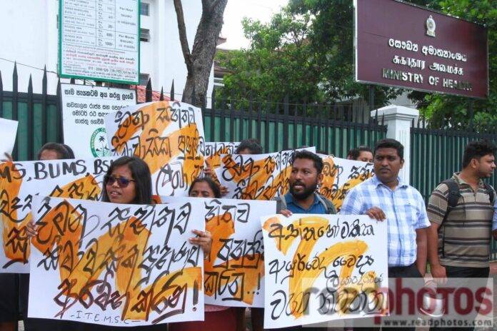 සීමාවාසික පුහුණුව ඉල්ලා ආයුර්වේද වෛද්‍යවරු උද්ඝෝෂණයේ! (PHOTOS)