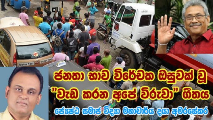 තමන් ගේ එම පාරිභෝගික අවශ්යතා වෙනුවෙන් පෝලීම් ගැසී සිටින ජනතාව හමුවට එන තරුණ කණ්ඩායම් වාද්ය භාණ්ඩ සහිතව පවා ගායනා කරන සහ වාහන ආදියේ ඇති ශබ්ද විකාශන යන්ත්ර මගින් වාදනය කෙරෙන එම ගීතය වනුයේ 2019 ජනාධිපතිවරණයේ දී වත්මන් ජනාධිපති ගෝඨාභය රාජපක්ෂ මහතා ගේ ජනපතිවරණ ප්රචාරක කටයුතු සඳහා යොදා ගැනුණු “වැඩ කරන අපේ විරුවා” නම් ගීතයයි.