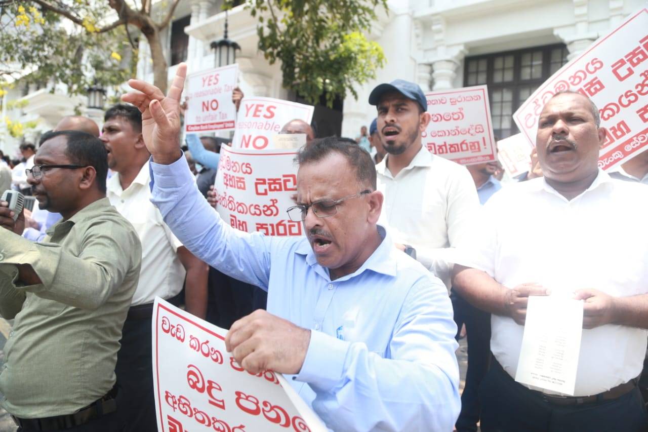 කොළඹ (LNW): අසාධාරණ බදු සංශෝධන පරාජය කිරීමට සටන් වදිමු යන තේමාවන් යටතේ විරෝධතා උද්ඝෝෂණ අදත් (14) කොළඹ නගරයේ ඇතැම් රාජ්ය ආයතන ඉදිරිපිටදී පැවැත්විනි.