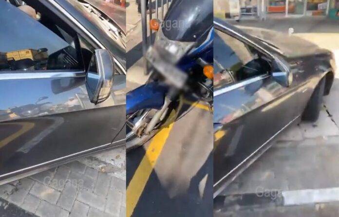 අධි සුඛෝපභෝගී බෙන්ස් රථයක් යතුරුපැදියක ගැටීමෙන් ඊයේ (14) සිදුවූ අනතුරක් සම්බන්ධයෙන් යතුරුපැදියේ පැමිණි තරුණයා මෙසේ ෆේස්බුක් හරහා සජීවීව වීඩියෝව නිකුත් කර ඇති අතර ඔහු පවසන්නේ බෙන්ස් රථයේ පැමිණි පුද්ගලයා තමන් අධිකරණ විනිසුරුවරයකු වශයෙන් හඳුන්වාගත් බවත් පුද්ගලයකු අනතුරට පත්කර පළායාමට උත්සාහ කළ බවත් ය.