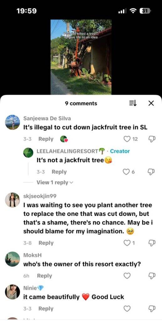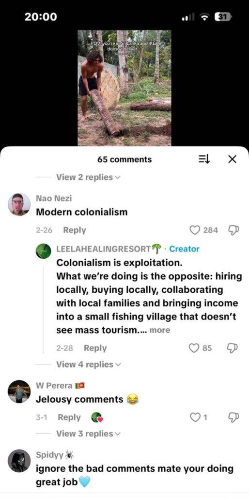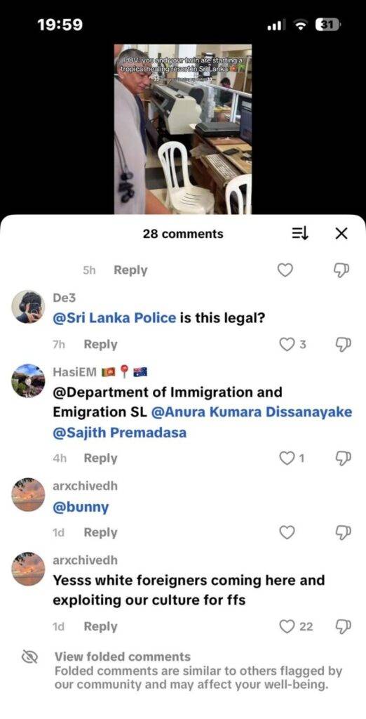 සමාජ මාධ්ය තුළ විශාල අවධානයක් දිනාගත් සිද්ධියක් වන්නේ TikTok හි සිටින විදේශීය පුද්ගලයින් විසින් පවත්වාගෙන යන ආයුර්වේද සුව කිරීමේ මධ්යස්ථානයක් ලෙස හංවඩු ගසා ඇති සුවතා නිවාඩු නිකේතනයකි.