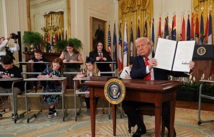 ඩොනල්ඩ් ට්‍රම්ප් එක්සත් ජනපද අධ්‍යාපන දෙපාර්තමේන්තුව විසුරවා හැරීමේ විධායක නියෝගයකට අත්සන් තබයි