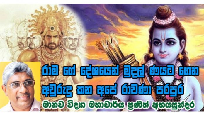 එහෙත්, ඇතමුන් විසින් සමස්ත මානව සංහතියේම අසම සම නරපතියා වන රාවණා ගේ පරපුරේ අයකු හට රාවණා කේන්ද්ර කරගත් හෙළ බක්මහ උළෙල සැමරීම පිණිස රාම කුමරුන් ගේ දේශයට ගොස් ණයක් ඉල්ලා ගෙන ඒමට සිදුවීම රාම කුමරුන් නැවතත් රාවණා ගේ ගෞරවනීය ප්රතිරූපයට එල්ල කළ පරම නින්දාවක් ලෙස යමකුට සිතෙන්නට බැරි නැත. එබැවින් මානව විද්යා විෂය පථය හා සම්බන්ධ වූවකු ලෙස ඒ පිළිබඳව අවසන් වශයෙන් කිව යුත්තක් තිබේ.