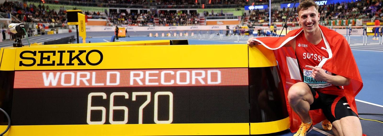 එසේම දෙවන දිනයේ තරග උළෙලේ ලෝක වාර්තාවක් පිහිටුවීම සඳහා ස්විට්ස්ර්ලන්තයේ සත් ප්රයාම සූර සයිමන් එහාම්මර් සමත් වුණා.ඉකුත් වසරේ ලෝක ගෘහස්ත තරගාවලියේ රිදී පදක්කම්ලාභියා වූ එහාම්මර මෙවර රිදී පදක්කමේ සිට රන් පදක්කම කරා ළගා වෙද්දී ලකුණු 6670 ක ලකුණු ප්රමාණයක් ලබසින් ඉසව්වේ ලෝක වාර්තාවද සිය නමට ලියා ගැනීමට සමත් වුණා.