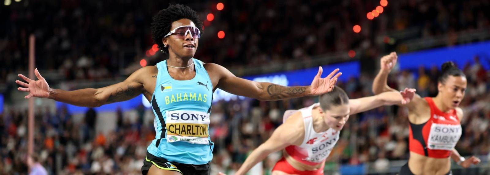 ඡායාරූපයේ සිටින්නේ මීටර් 60 කඩුලු නව ලෝක වාර්තාලාභිණිය ඩිවයින් චාර්ල්ටන්ය.