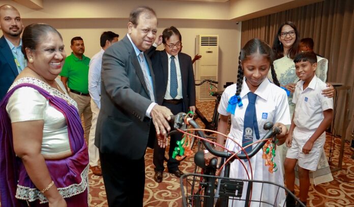 අප්රේල් 01, , කොළඹ (LNW): ජපන් ‘චයිල්ෆන්ඩ්’ආයතනය විසින් මෙරටට දුෂ්කර ප්රදේශවල පාසල් දරුවන්ගේ දෛනික පාසල් පැමිණීම දිරිමත් කිරීමේ අරමුණින් සිසුන්ට අඛණ්ඩ ව පාසල් පැමිණීමේ අවස්ථාව සලසා දීම සඳහා පාපැදි 500ක ප්රදානයක් ලබා දී ඇත.