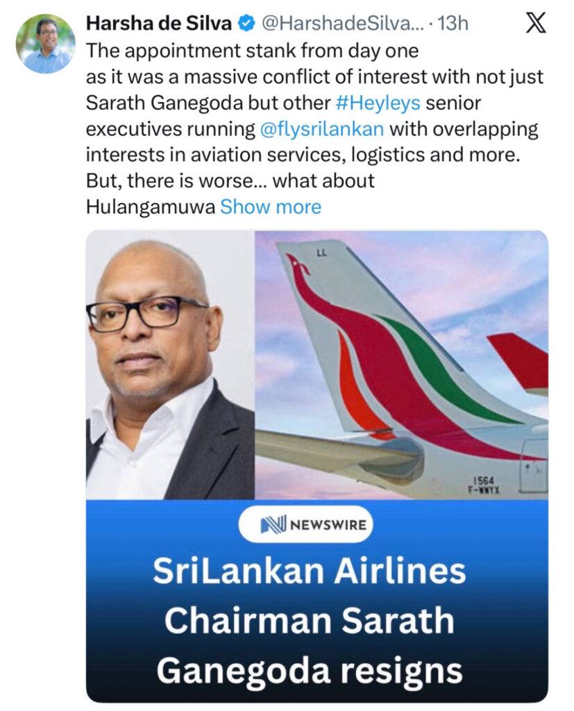 කැළඹිලි සහිත වසරකට පසු, සරත් ගනේගොඩ අවසානයේ ශ්රී ලංකන් ගුවන් සේවයෙන් ඉල්ලා අස්වී තිබේ. මාස ගණනාවක් තිස්සේ ඔහුගේ ධුර කාලය තුළ පාලනය, මූල්ය තිරසාරභාවය සහ දැඩි තරඟකාරී ගුවන් සේවා වෙළඳපොළක තරඟ කිරීමට ශ්රී ලංකන් ගුවන් සේවයට ඇති හැකියාව විවාදවල කේන්ද්රස්ථානය විය. ඔහුගේ ඉවත්වීම ගුවන් සේවය සහ පුළුල් කර්මාන්තය කෙරෙහි විශ්වාසය නැවත ඇති කිරීම සඳහා අවශ්ය පියවරක් ලෙස පුළුල් ලෙස සැලකේ.