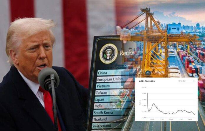 ඊයේ (02) දිනයේදී සියලු කොටස් මිල දර්ශකය නැවතත් ඒකක 16,000 ඉක්මවා ගොස් තිබුණු අතර මේ පසුබෑම උද්ගතව තිබුණේ අමෙරිකානු ජනාධිපති ඩොනල්ඩ් ට්රම්ප් විසින් ශ්රී ලංකාවෙන් ආනයනය කරන භාණ්ඩ සඳහා 44% ක තීරුබද්දක් පනවන බව අද උදෑසන ප්රකාශයට පත් කළ පසුබිමක ය.