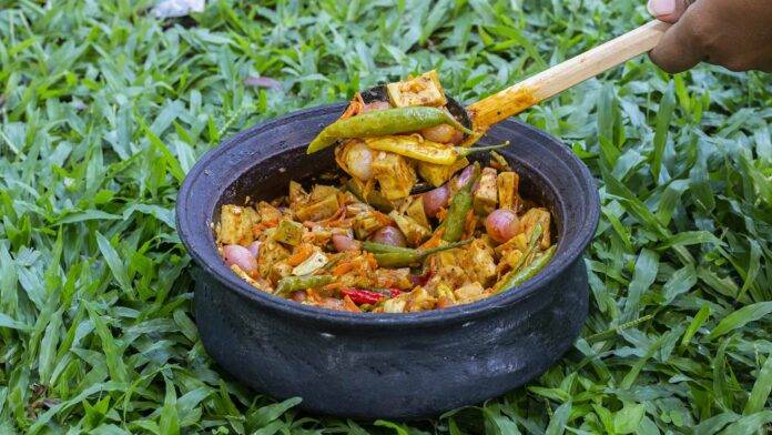 අබ විනාකිරෙන් කෑලි ඉතිරිවන සේ තළාගන්න. ගම්මිරිස් වෙනම විනාකිරෙන් හොඳින් අඹරා ගන්න. පසුව මැටි ඇතිළියක් ලිප තබා එයට විනාකිරි මේසහැඳි පහක් පමණ දමා රත්කරගන්න. එය රත්වන විට එයට ඉඟුරු, සුදුලූනු එකතු කරන්න. ඒ සමගම රතුලුනු සහ දෙකට පළාගත් අමුමිරිස් කරල් එක්කරගන්න. පැහැය වෙනස් වන්නට කලින් විනාඩියක් ඇතුළත ලිපෙන් ඉවත් කරගන්න.