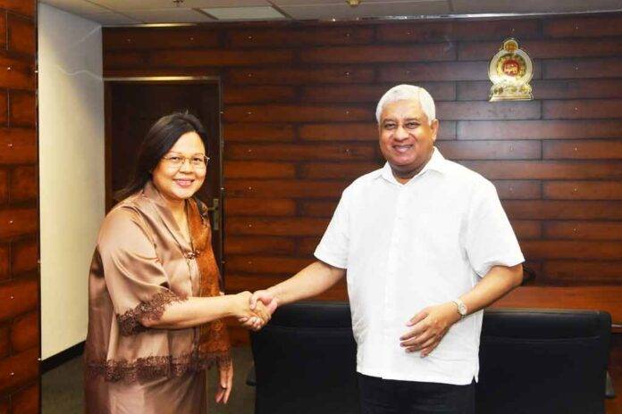 ශ්රී ලංකාවේ ඉන්දුනීසියානු මහ කොමසාරිස් දේවි ගුස්ටිනා ටෝබින්ග් මහත්මිය සහ මහජන ආරක්ෂක ඇමැති ටිරාන් අලස් මහතා අතර හමුවක් අද (06) මහජන ආරක්ෂක අමාත්යාංශයේදී පැවැත්විණි.