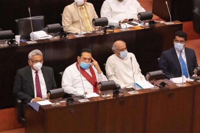 ජනාධිපති ගෝඨාභය රාජපක්ෂ මහතා පාර්ලිමේන්තුවට පැමිණ සභාගර්භයෙහි අසුන්ගෙන තිබේ.
