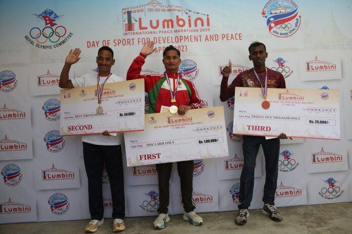 නමුත් තරගාවලියට ආරාධිත රටක් හැටියට ශ්රී ලංකාවද ඇතුළු විශාල රටවල් ප්රමාණයක් එක්ව සිටියා.ඒ අනුව අප්රේල් 6 වන දා මැරතන් තරගය පෙරවරු 7.00 ට කපිල්වස්තු හි තිලවුරාකොට් මාලිගයෙන් ආරම්භ වී ලුම්බිණියේ ශාන්තිදීප් වෙත ළඟා වීමෙන් අවසන් වෙද්දී එහි මුල්තැන දරන්නට නේපාලය නියෝජනය කළ කගේන්ද්ර බඳූර් බාට් සමත් වුණා.දෙවන ස්ථානය හිමි වූයේ නිරාන් බඩ්කාටයි.පිළිවෙලින් ඔවුන් දෙදෙනාට නේපාල රුපියල් ලක්ෂය සහ පනස් දහස බැඟින් හිමි වුණා.තෙවන ස්ථානය හිමි වූයේ ශ්රී ලංකාවේ අමිල සනත්ට යි.ඔහුට හිමි වූයේ රුපියල් විසිපන්දහසක මුදලකුයි.එය ශ්රී ලංකාවේ මුදලින් හැට දහසකට අධික මුදලක් වන්නේ මේ වන විට නේපාල රුපියලක් වෙනුවෙන් ශ්රී ලංකා රුපියල් 2.44 ක් ගෙවීමට නියමිත නිසයි.