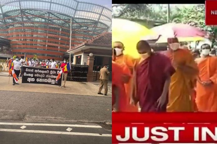 බෞද්ධ භික්ෂුන් සහ ඉරාජ් වීරරත්න, ඩෑන් ප්රියසාද් යනාදී සමාජ මාධ්ය ක්රියාකාරිකයින් කිහිපදෙනෙකු ඇතුළු පිරිසක් ඊට එක්ව සිටිනු දක්නට ලැබිණි.
