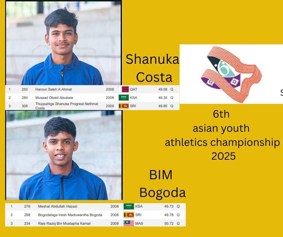 සවුදි අරාබියේ ක්රියාත්මක 6 වන ආසියානු යොවුන් මලල ක්රීඩා සූරතාවලියේදී ශ්රී ලංකාව වෙනුවෙන් පළමුව පිටියට පිවිසි මීටර 400 ඉසව්ව නියෝජනය කළ සෙනුක කොස්තා සහ මධුවන්ත බෝගොඩ යන දෙදෙනාම අවසන් පූර්ව තරගයට සුදුසුකම් ලබා ගැනීමට සමත් විය.